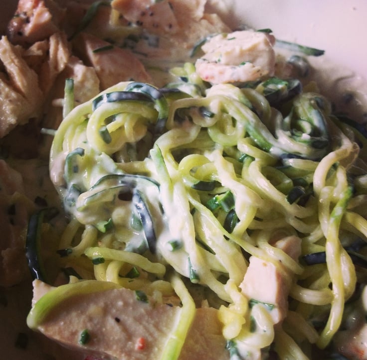 Macarrão de abobrinha com molho branco e frango